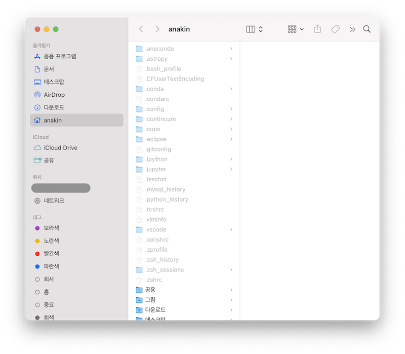 맥os 의 파인더 (윈도우의 탐색기) 에서는 기본적으로 숨김폴더가 보이지는 않는다.