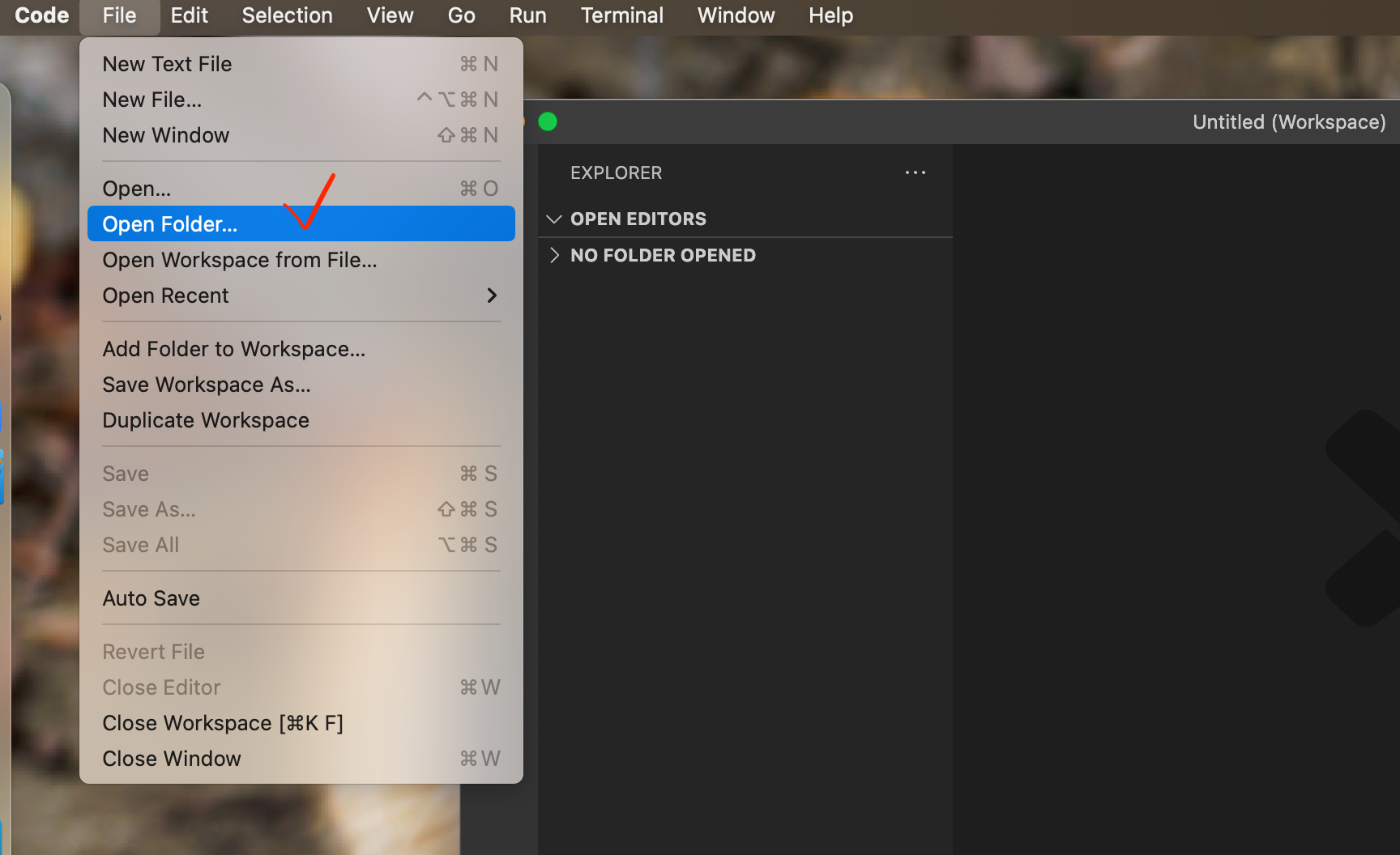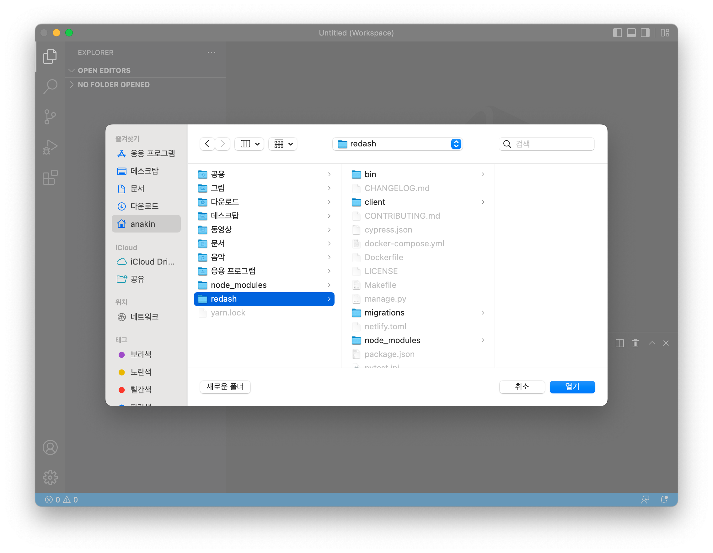 - 파일(File) 메뉴에서 폴더 열기를 선택한 후에