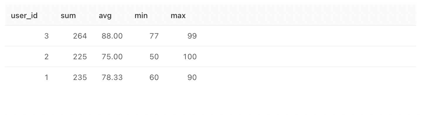 , avg(score) as avg