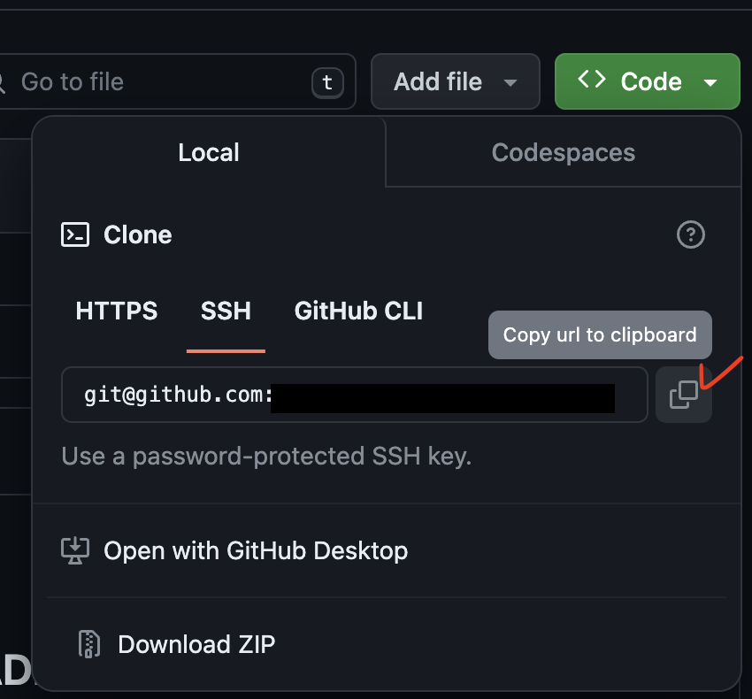 여기에서 복사한 ssh 주소를 약간 수정해줘야한다.