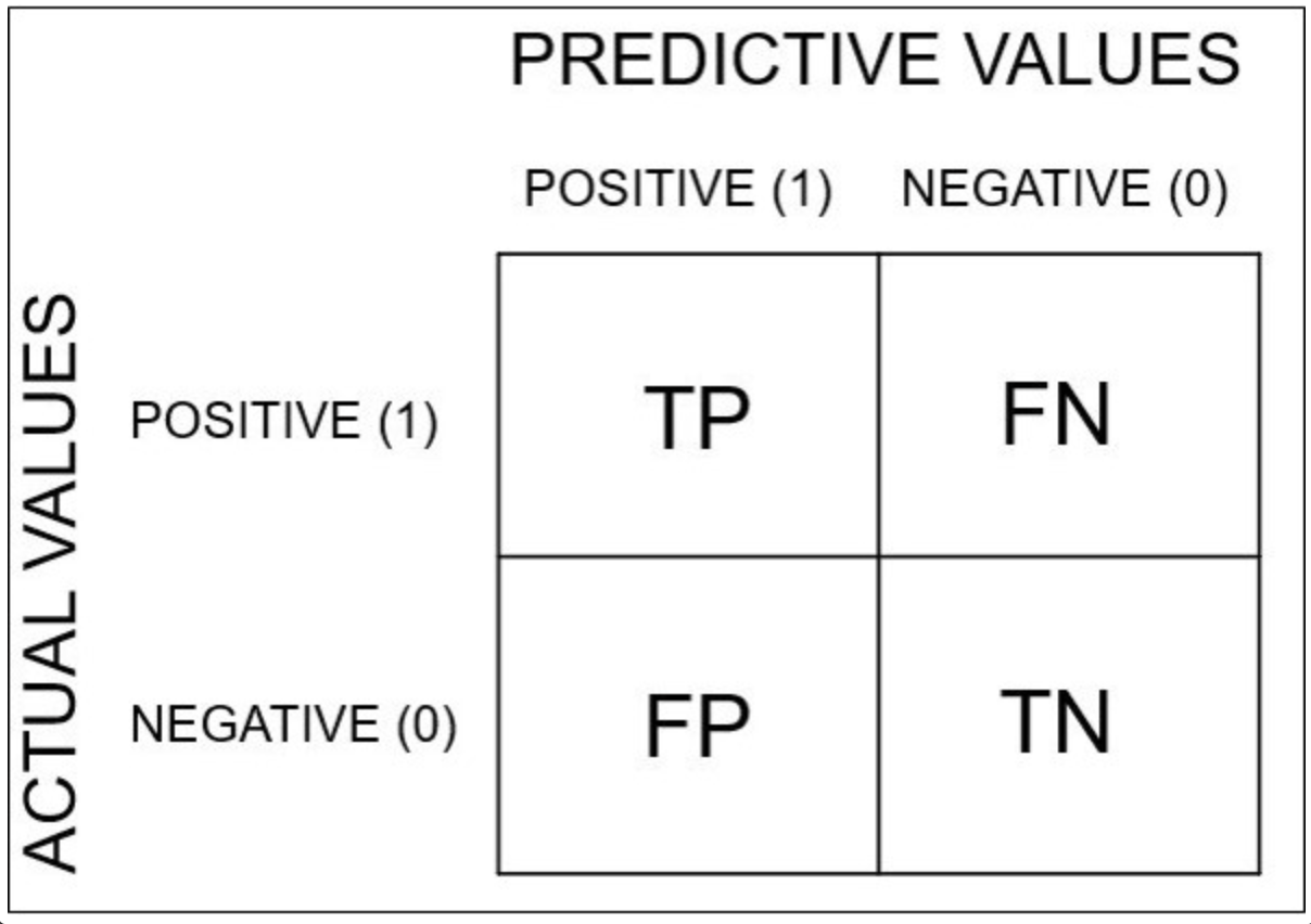 오차행열이라고 하며, 실제 데이터의 값과 모델이 예측한 값의 표라고 볼 수 있다.