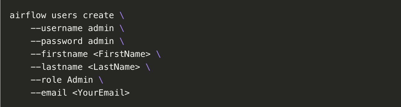 airflow users create --username admin --password admin --firstname youngsoo --lastname park --role Admin --email admin@abc.com