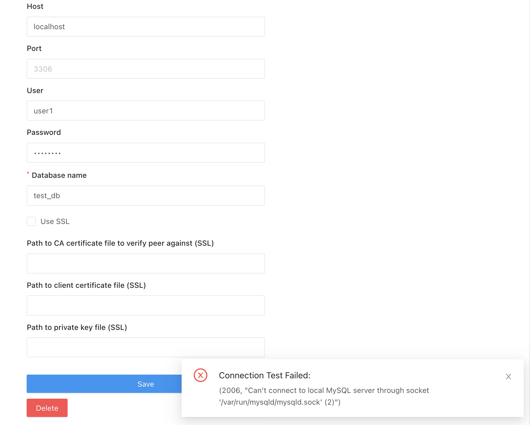 poryfly April 21, 2021, 3:26am 1 I install redash on the mac through docker. Mysql also had been installed on the mac. And mysql also allowed any host. I can reference mysql on other host. But when connect mysql,it has some err:"2006, “Connection Test Fa