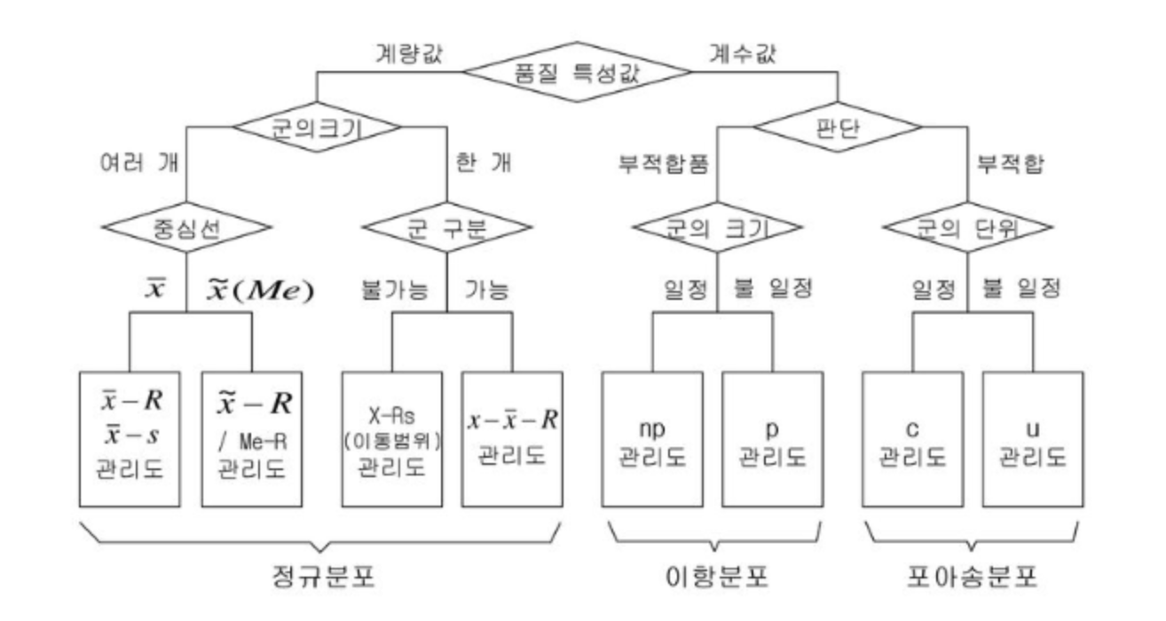 어떤 경우 어떤 관리도를 사용해야하는지 분류한 도표를 소개합니다.