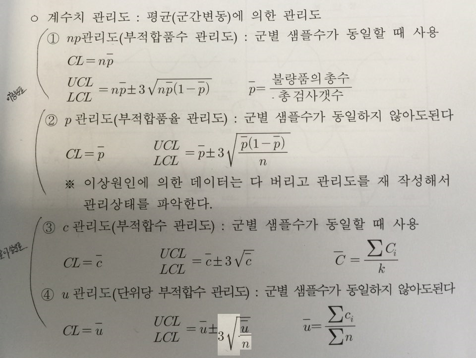 계수형관리도의 관리선 공식